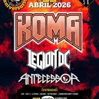 Encabezando esta celebración estarán los navarros Koma, toda una institución del directo demoledor, el riff ardiente y la lírica mordaz. Con treinta años de historia y un legado que nunca ha dejado de rugir, el grupo liderado por Brigi promete un huracán eléctrico junto a Natxo, Juan Karlos y Rafael.
