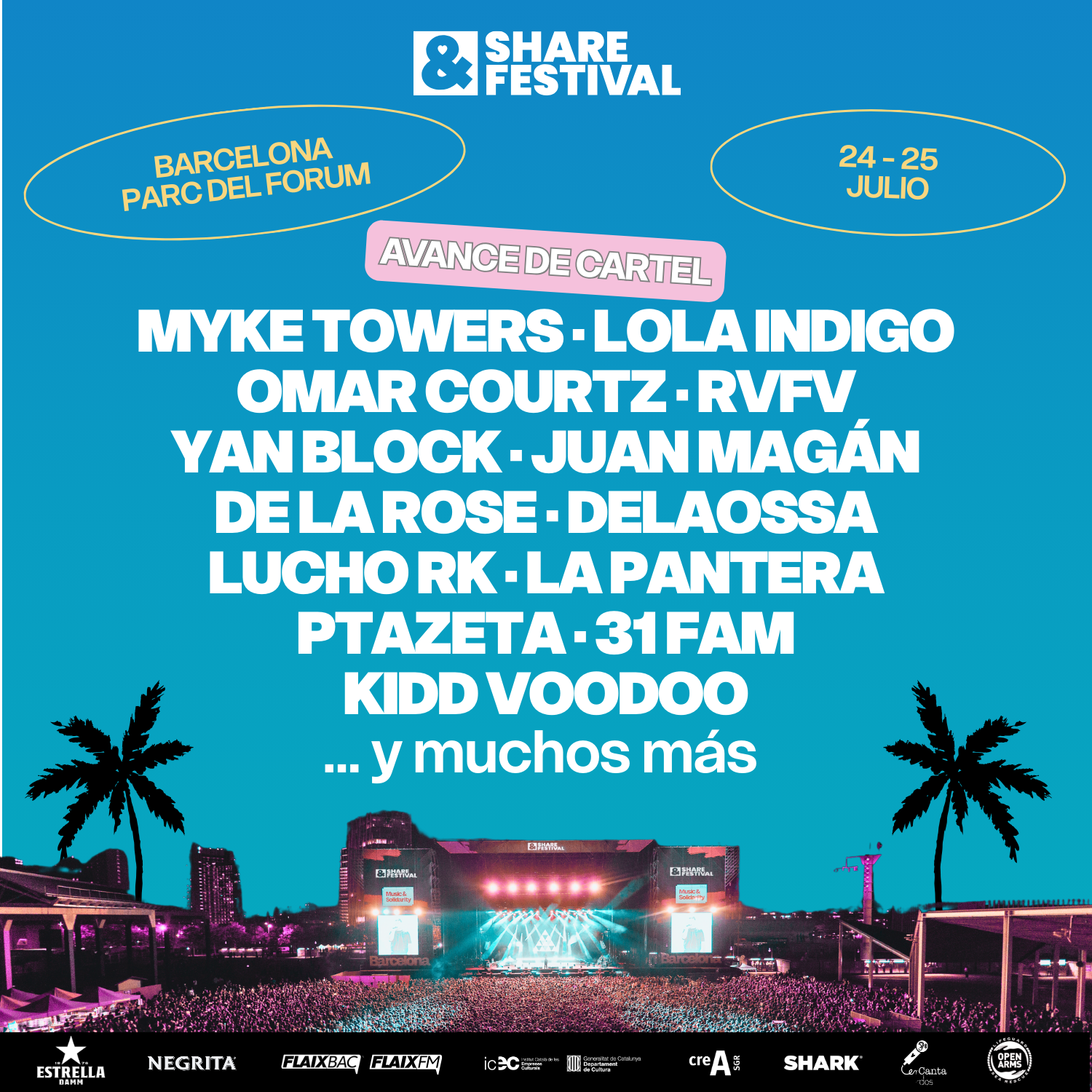 Share Festival Barcelona 2026 se celebrará los días 24 y 25 de julio de 2026 en el Parc del Fòrum de Barcelona, uno de los recintos más emblemáticos para grandes eventos musicales en la ciudad. El festival, que alcanza su octava edición, se ha consolidado como una de las citas destacadas del verano para los amantes de la música urbana, latina, hip hop, rap y trap.